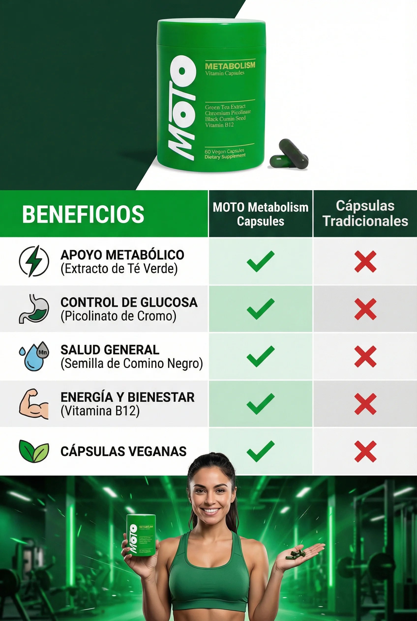 Toma 2 cápsulas al día para obtener el mejor apoyo metabólico: