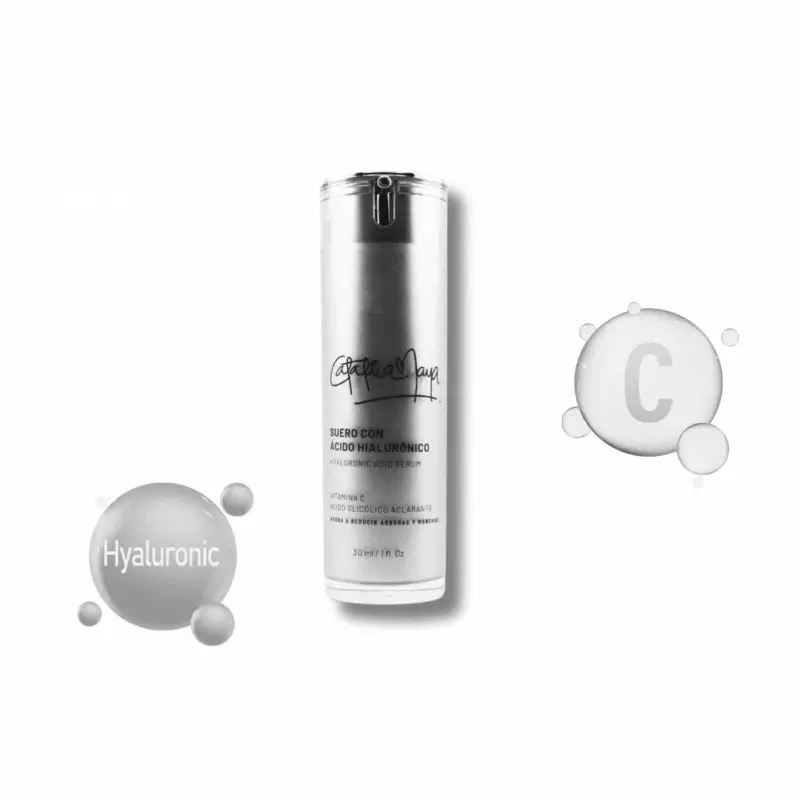 El Suero con Ácido Hialurónico y Vitamina C hidrata, suaviza tu piel y promueve la producción de colágeno para una apariencia más juvenil.